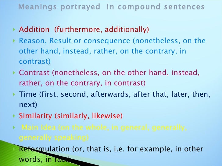 Learn to distinguish conjunctive adverbs from subordinating conjunctions; they do not function in the same way. Conjunctive adverbs should be used to begin independent clauses, not to join them. We saw in sentence structure that a compound sentence is two independent clauses joined by a coordinating conjunction or semicolon. So a compound sentence is like two or more simple sentences added together. A compound sentence does not contain any dependent clauses.